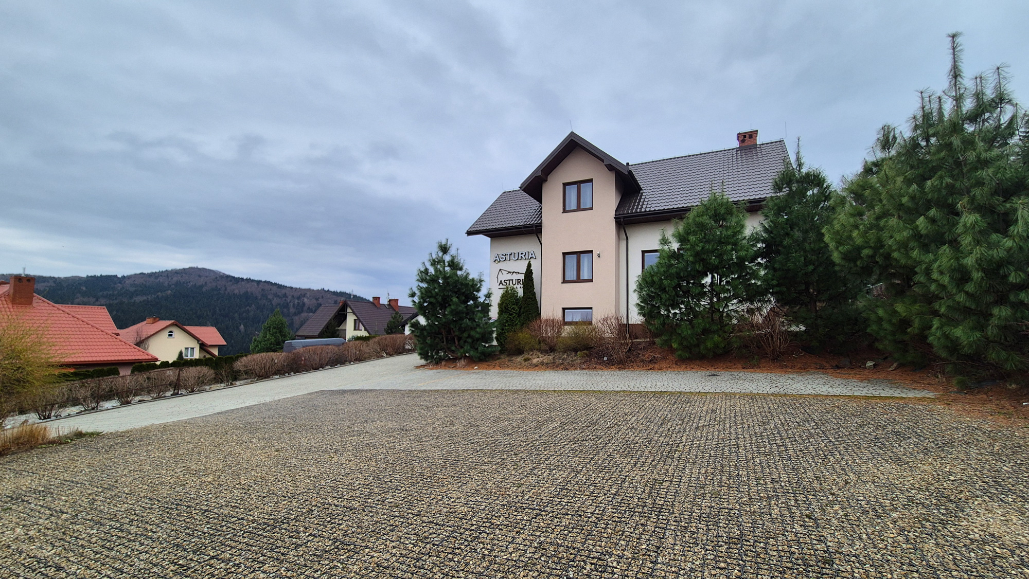 Villa Asturia została zaprojektowana z myślą o Gościach szukających ciszy, harmonii i odprężenia. Elewacja łączy klasyczne elementy podkarpackiej architektury z nowoczesnym designem – naturalne drewno, jasne detale i duże przeszklenia tworzą spójną całość, doskonale wpisując się w krajobraz uzdrowiska.